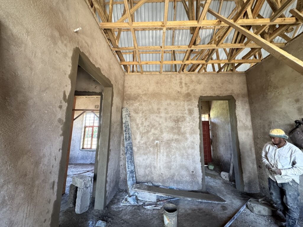 Before I went out with Lucas for a bit, I had helped Abby do the dishes. I don’t know how she and Grace do it—they normally stand up and bend over these basins—but I needed a bucket to sit on because my back started hurting after only a few minutes of trying to imitate her. Lucas and I went to his school site. The wall is just about finished, but the rain is delaying the project a bit. The ground has become soggy with the recent storms and driving any car into the swamp-like mud is a no-go. I went along with him while he did some other tasks. At one point he saw a house under construction that he liked and we stopped to look at it.