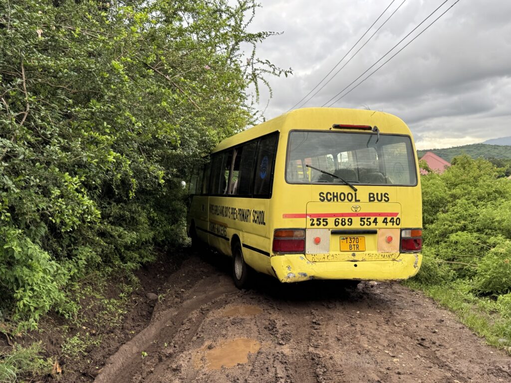 This is the patch of road we decided to turn around at during the morning route. Because it was sunny throughout the day, we thought it safe to cross in the afternoon. We were wrong. We hit the muddy patch like a soap covered slip n slide and the bus began to fall off to the right side of the road. Luckily we stopped before any disaster, but we had to unload all the kids just in case something bad happened while jimmying our way out of the precarious spot. In the end it was fine; some muddy shoes, but we eventually got back to the route. Thankfully throughout this whole ordeal there was a nice view.