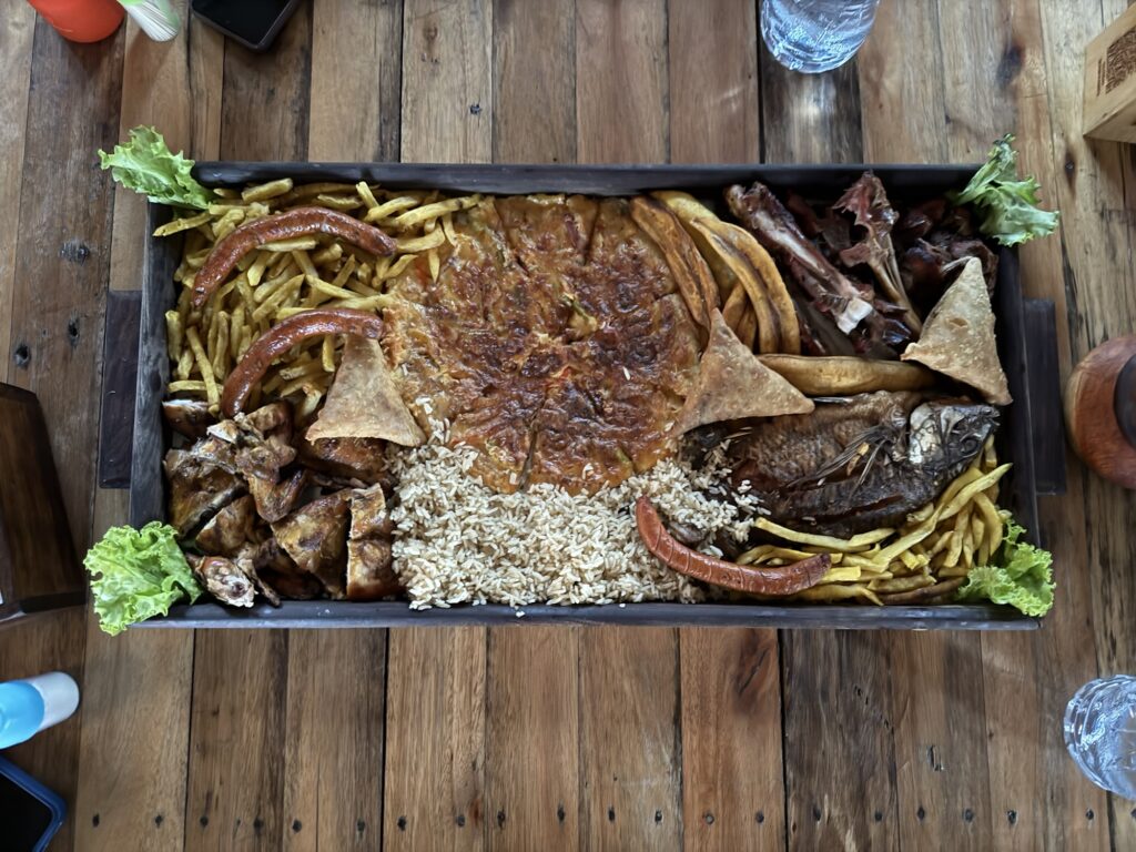 It was pretty sick to be able to go into, there were some referees doing training, but pretty quiet other than that. After a bunch more walking around, Ezekia and I met our friend, Pamela. Us three then got my clothes and went out of the city center to a nice ice cream shop. There was so much I saw in between all these main events, but I feel like I wouldn’t do any of it justice without pictures to accompany my descriptions. Ezekia left us after ice cream and Pamela and I went to a fast food place called Cossi’s where I got a fried chicken sandwich! And then, without knowing it was the plan, Pamela said “come we need to go meet my friend for her birthday”. So we hopped into a daladala (the public transit van) and went to a nice restaurant called Leon’s.