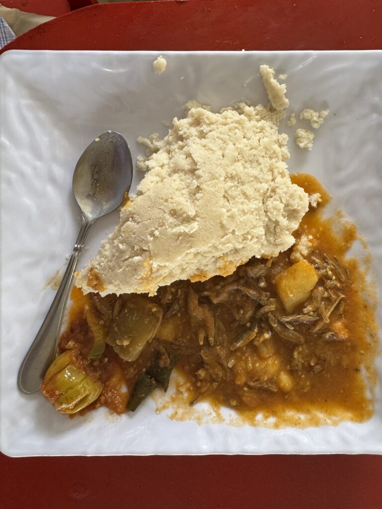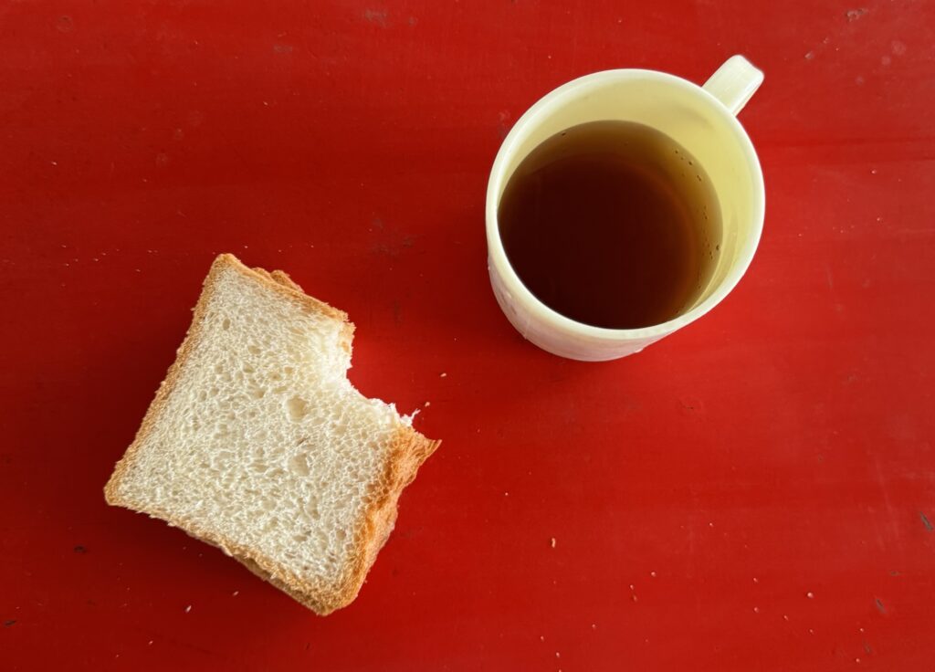I normally have breakfast at home, but the school serves a breakfast every day as well. For the teachers it’s 4 slices of bread and a cup of black tea—for the kids it’s 2 slices and a sip. In the past I haven’t typically enjoyed tea (unless it’s black licorice); this tea is different. Every morning I look forward to my tea break at 10:30 and there must be a decent amount of caffeine because I always feel more alert starting around 11:00.