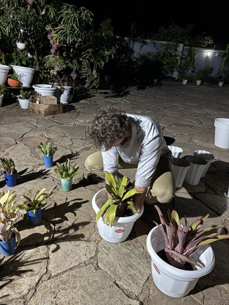 It was very hot yesterday, in the mid 80’s with very little cloud cover. I’m glad I’m wearing long sleeves so as to not getting sunburnt, but then again I am sweating like crazy! I took the bus home again and it is so adorable seeing all the little kids playing around in the bus and being trouble makers. The afternoon at home was slow and relaxing. Edith came home last night with many pots and plants and we all worked for an hour or more potting the plants.